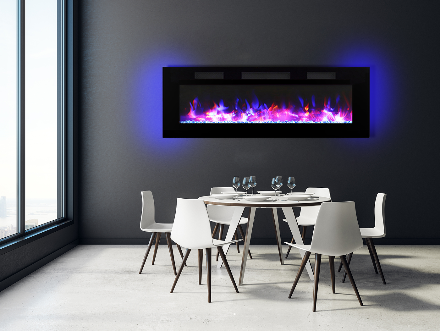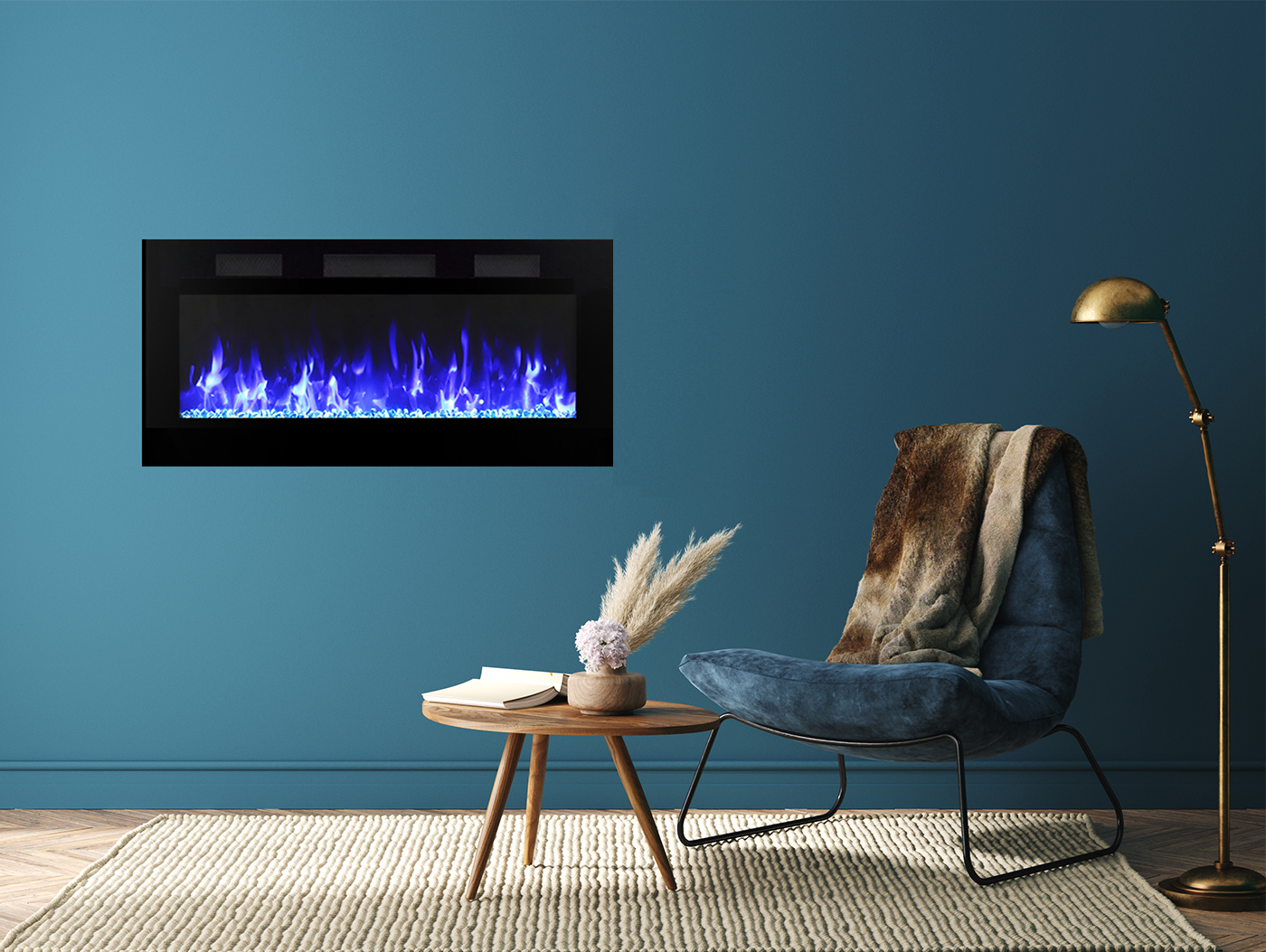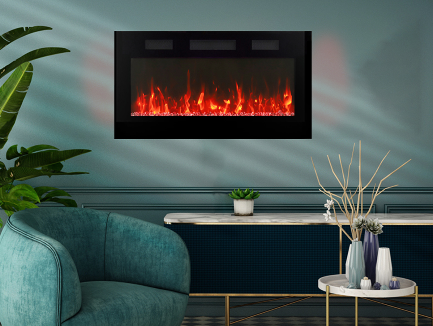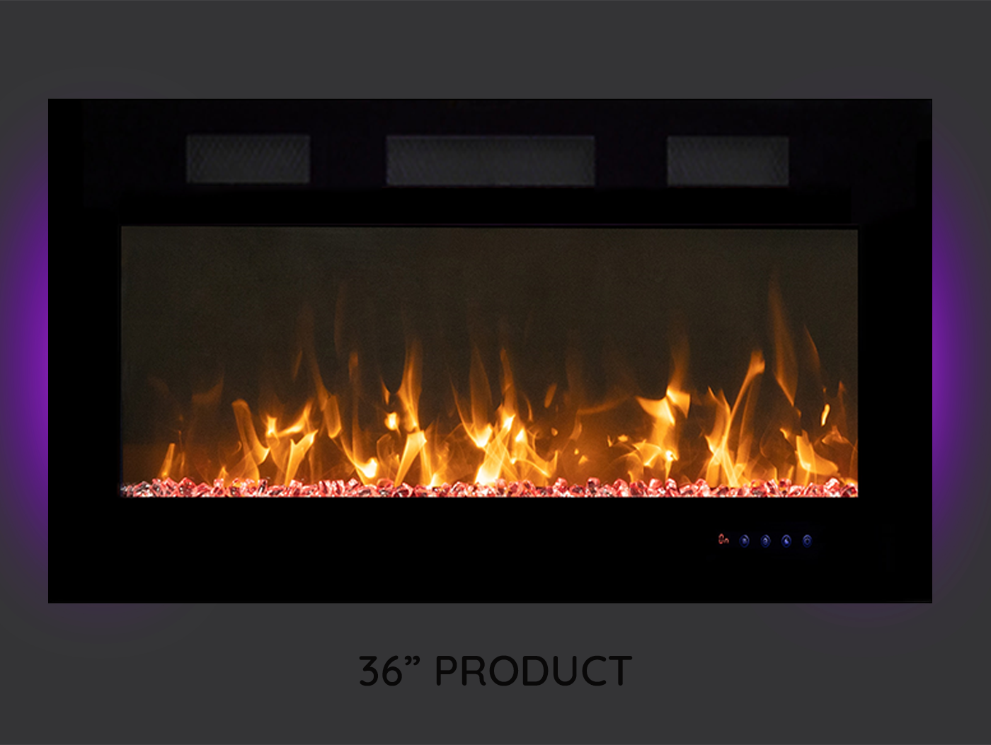 •Top venting electric fireplaces keep your home warmer, increase efficiency, and reduce the amount of wasted energy.